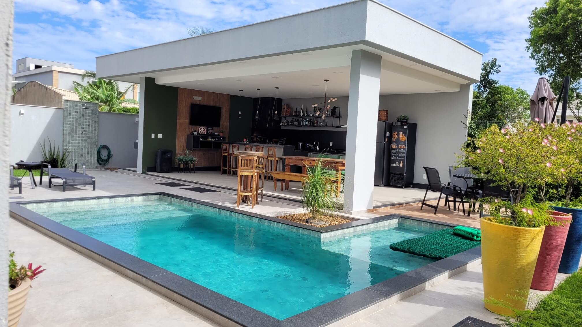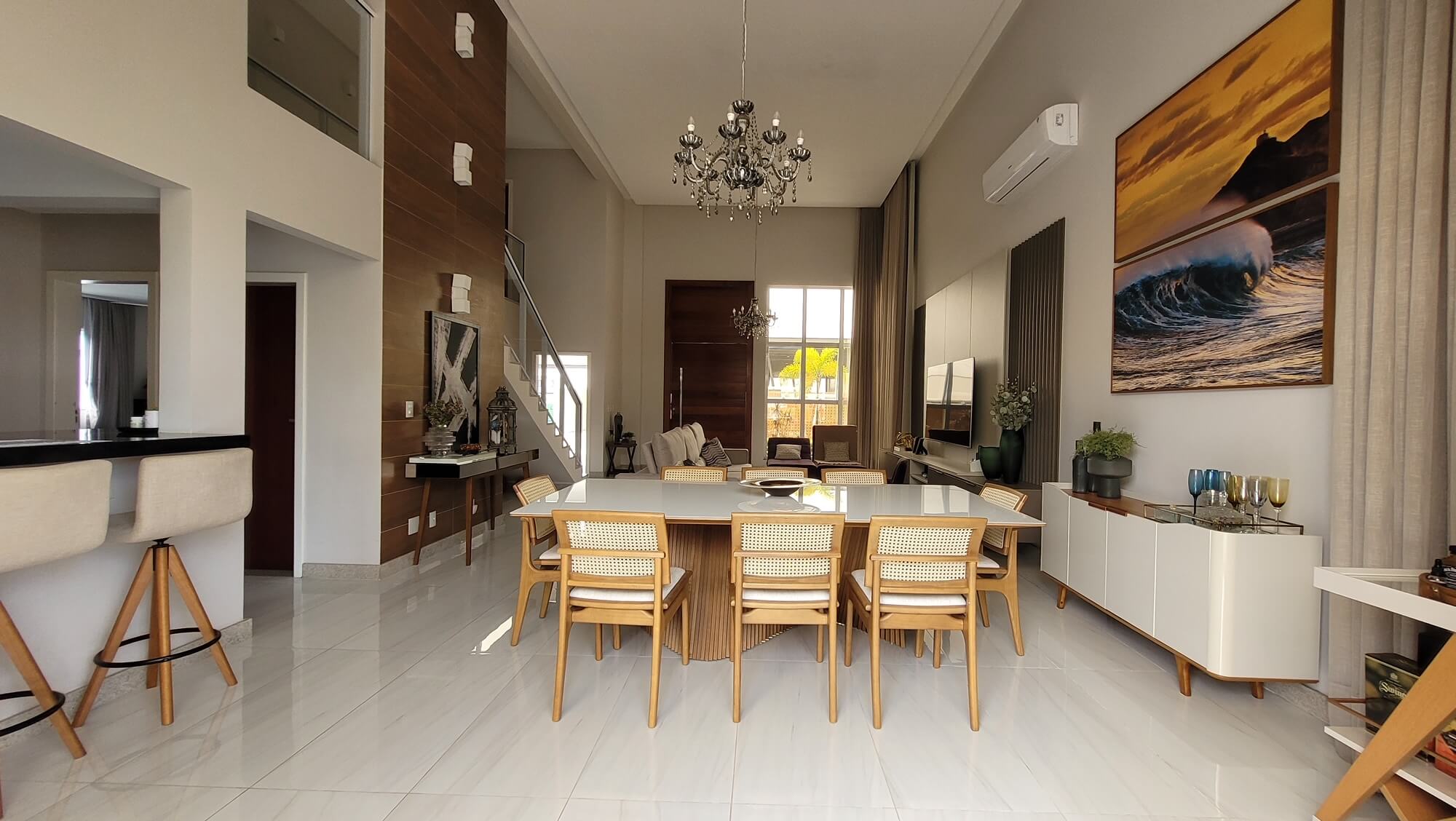 Uma linda casa toda montada e decorada, com ambientes amplos e aconchegantes, toda climatizada. Esta casa possui 4 quartos com suíte, sendo 2 com closet, sala de estar e jantar integradas, uma espaçosa cozinha, lavanderia, uma linda e charmosa área gourmet com piscina e garagem para 4 carros.