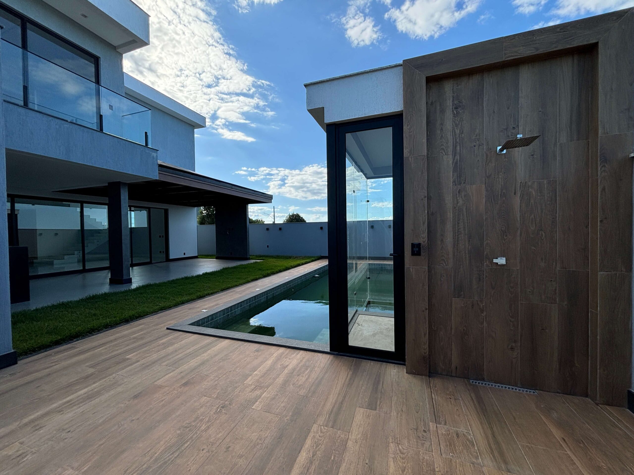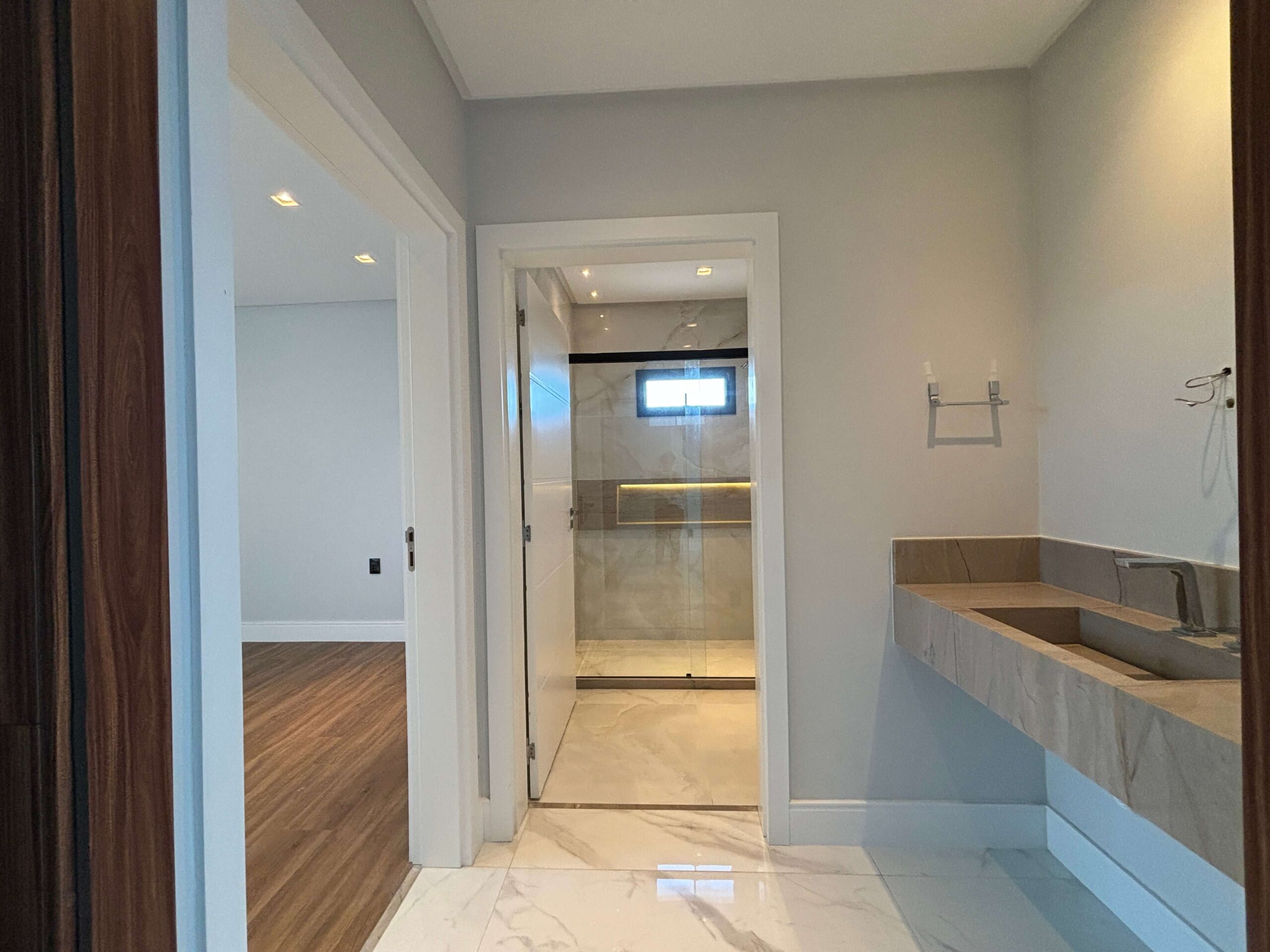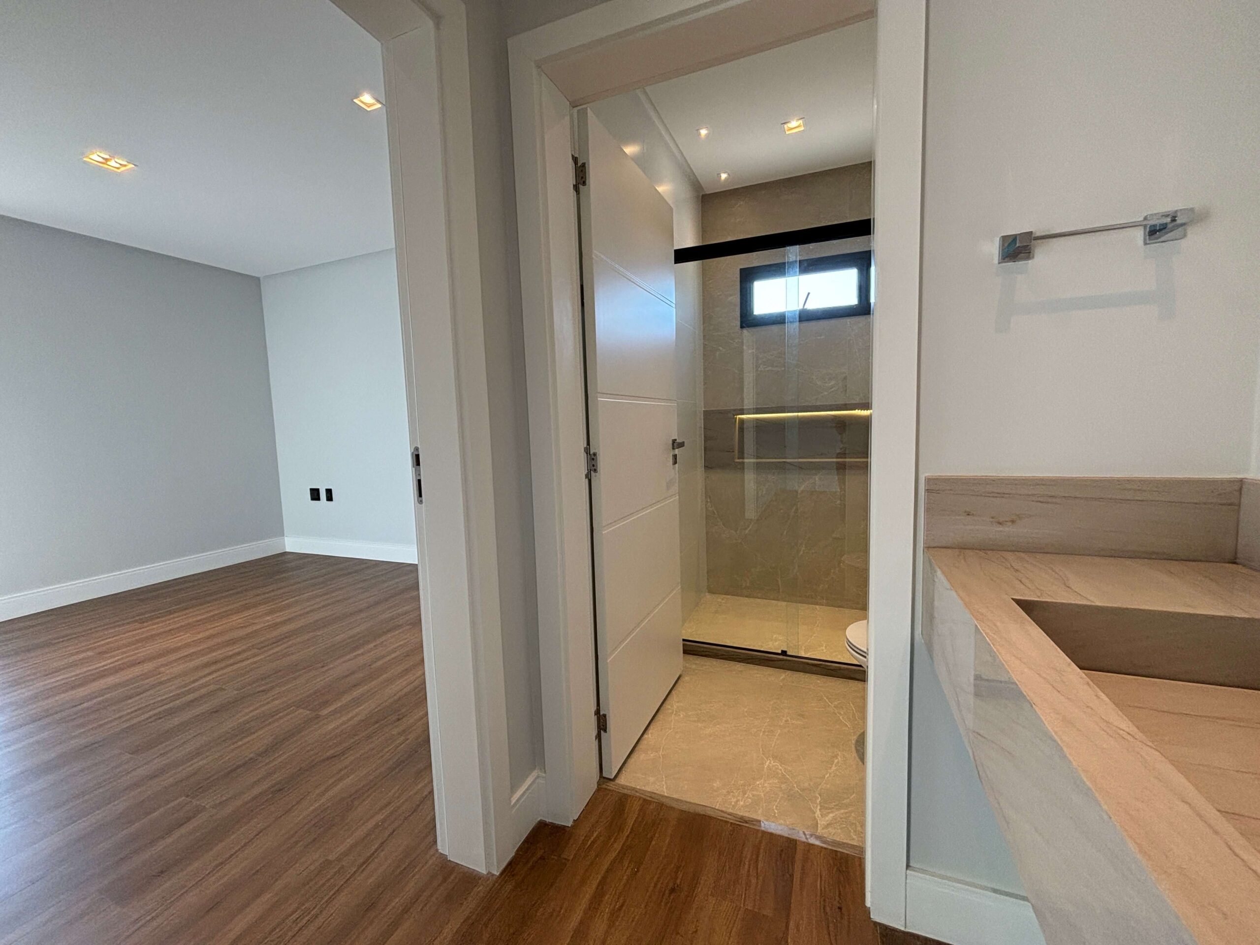 Esta linda casa duplex possuí 5 quartos ,sendo 4 com suíte e 2 com closet. O quarto do casal possuí um closet bem amplo, e uma suíte com hidromassagem, duas cubas e dois chuveiros, tudo para dar privacidade e comodidade ao casal.